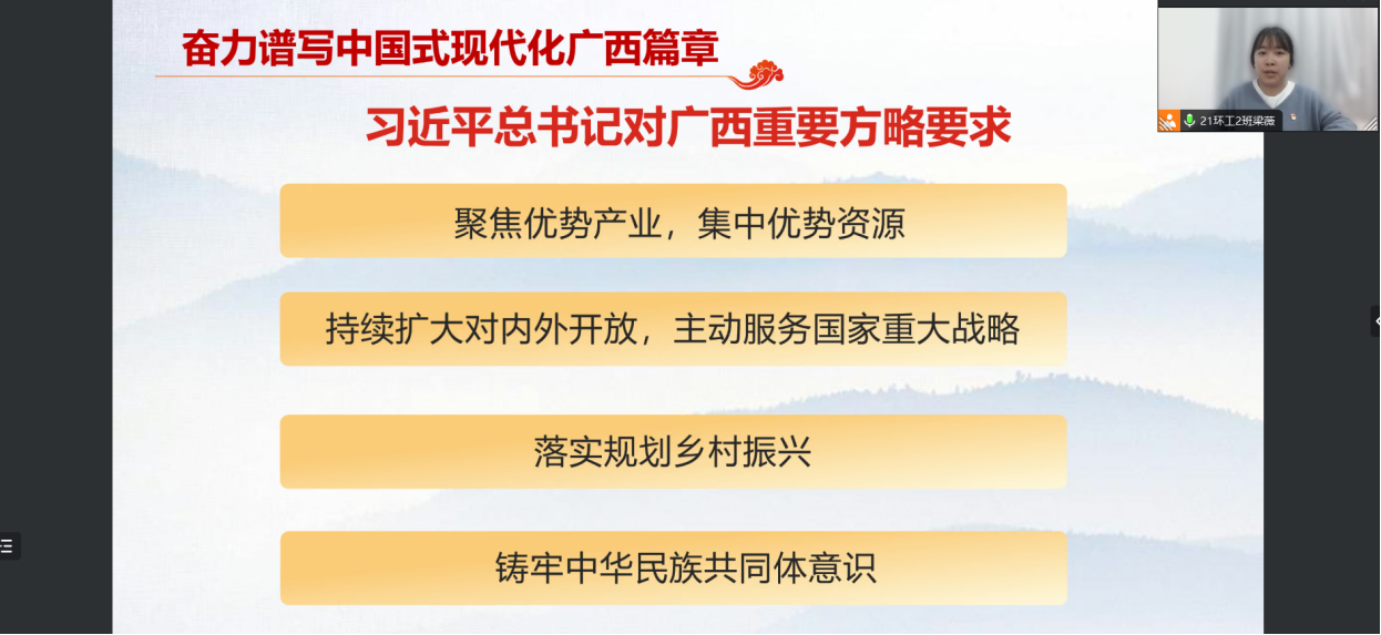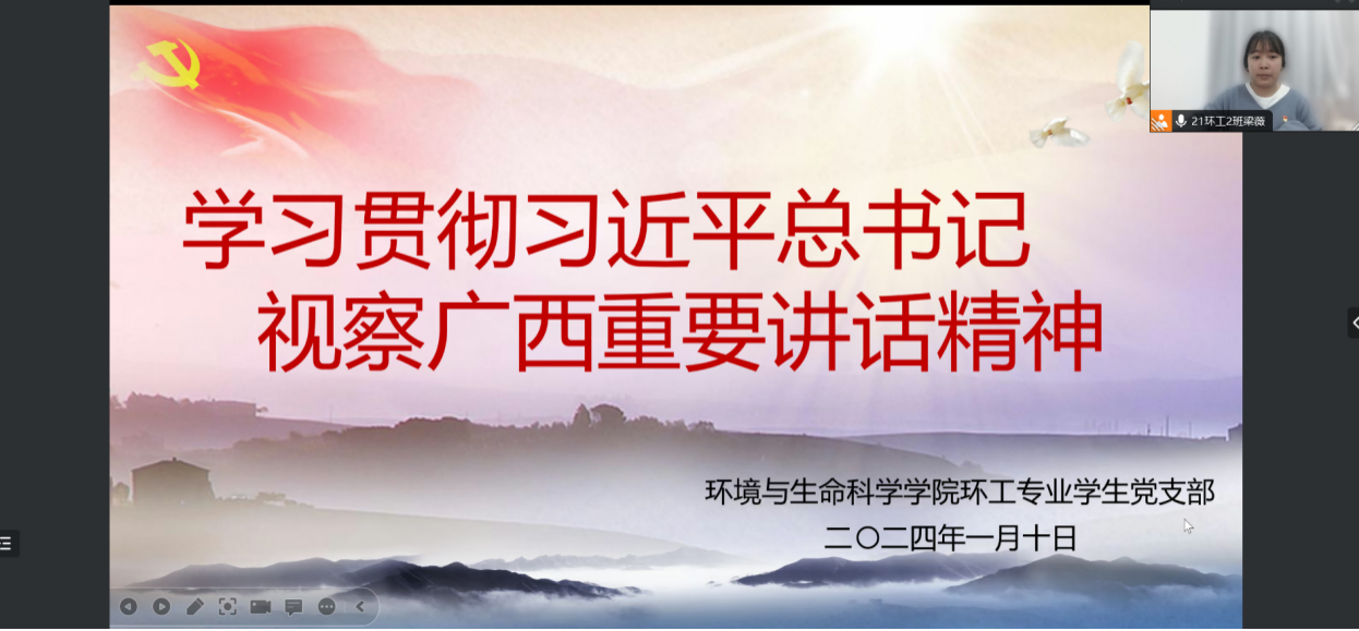 环工专业学生党支部于1月10日晚在腾讯会议开展“学习贯彻习近平总书记视察广西重要讲话精神”主题党课学习。参会人员有*偷拍网