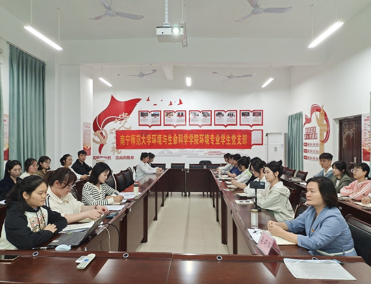 环境专业学生党支部全体党员,本次会议由支部副书记陈秋灵主持。