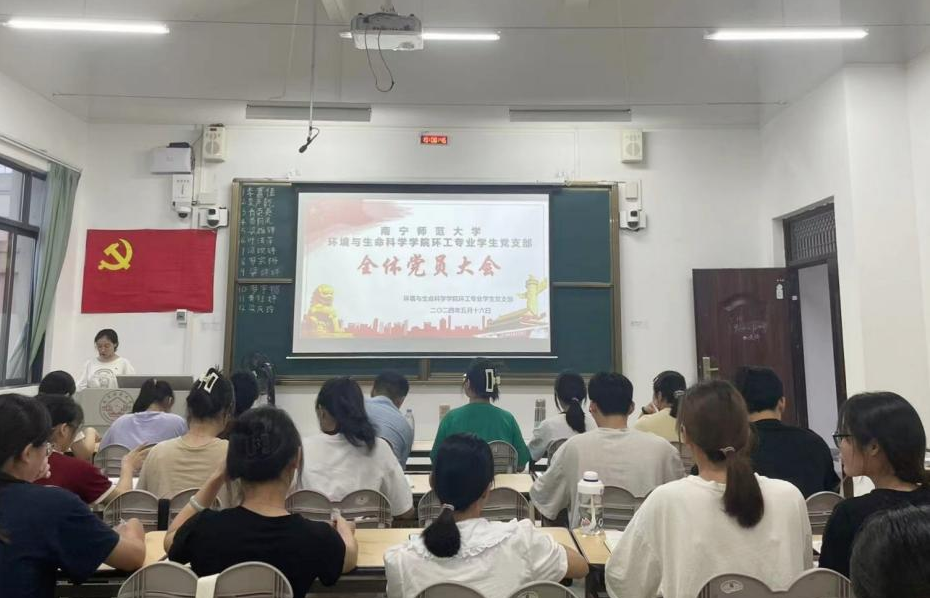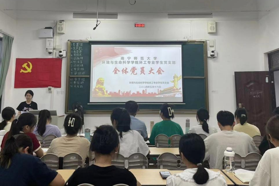 环工专业学生党支部于5月16日晚在武鸣校区1号教学楼411教室召开全体党员大会。会议主要议题是讨论12名发展对象接收为预备党员的问题,与会人员有*偷拍网