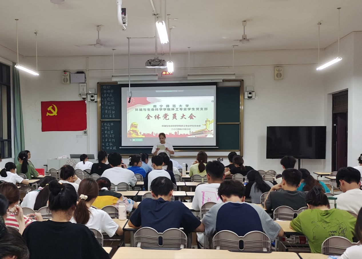 环工专业学生党支部于6月3日晚在武鸣校区1号教学楼218教室召开全体党员大会。会议主要议题是讨论徐玲等15名预备党员转为正式党员的问题,参会人员有*偷拍网