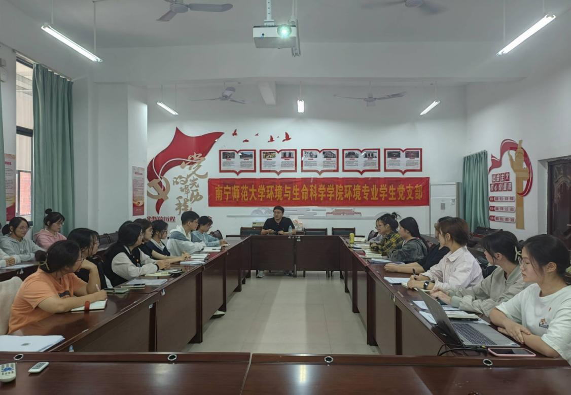 环境专业学生党支部在地海楼B508会议室召开了全体党员大会。会议主要议题是讨论张珂萤等6名发展对象接收为预备党员的问题,环境专业学生党支部书记张拓、全体党员以及6名发展对象参与了此次会议。