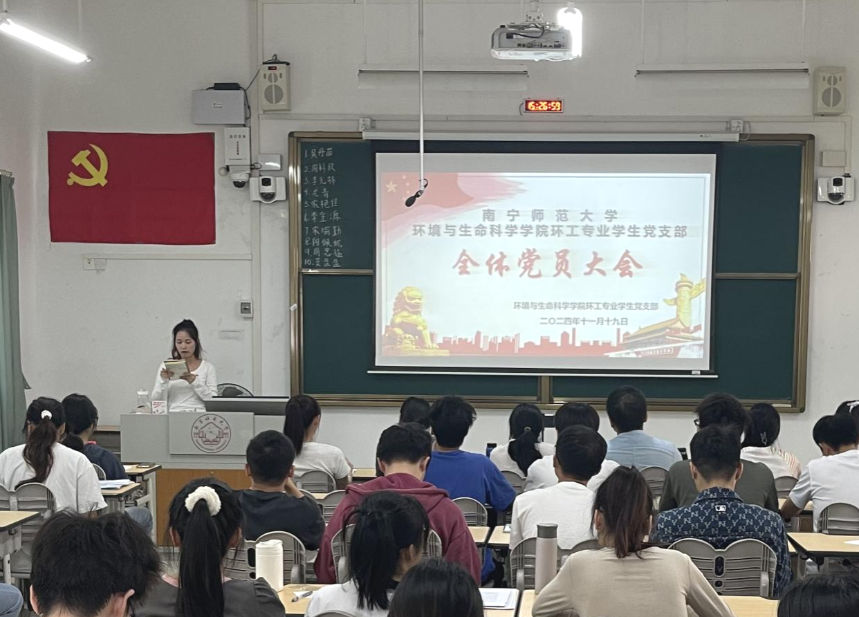 环工专业学生党支部于2024年11月19日下午在武鸣校区1号教学楼120教室召开全体党员大会。会议主要议题是讨论吴丹苗等10名预备党员转为正式党员的问题,参会人员有*偷拍网