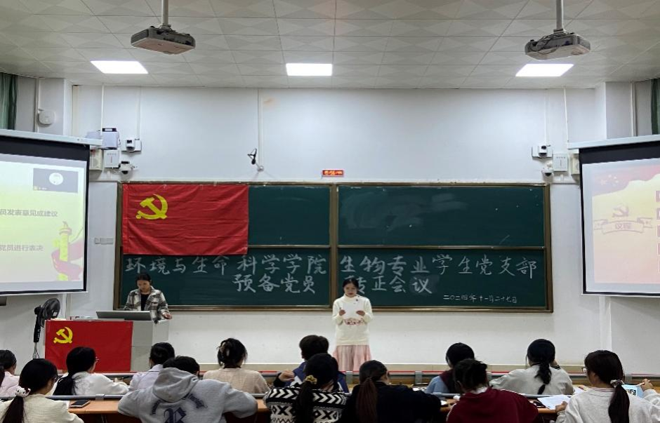 生物专业学生党支部在武2-221教室召开了预备党员转正会议,生物专业学生党支部全体党员参与了本次会议。