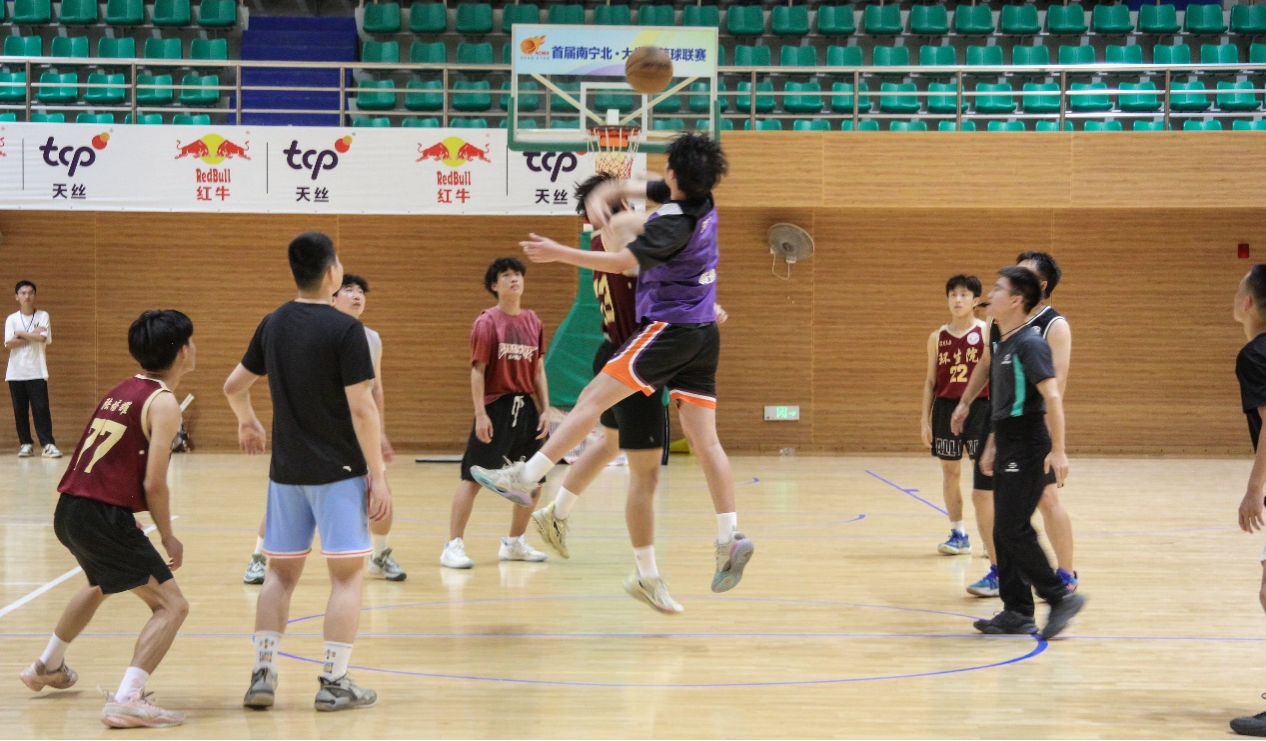 教工和学生党支部在武鸣校区松园室内篮球场联合举办“党建强基,篮球传情”主题党日活动。