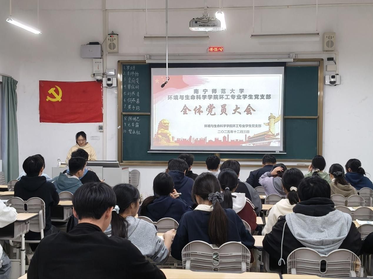 环工专业学生党支部于武鸣校区1号教学楼120教室召开预备党员接收会议。支部书记普胤杰、全体党员及10名发展对象参会。