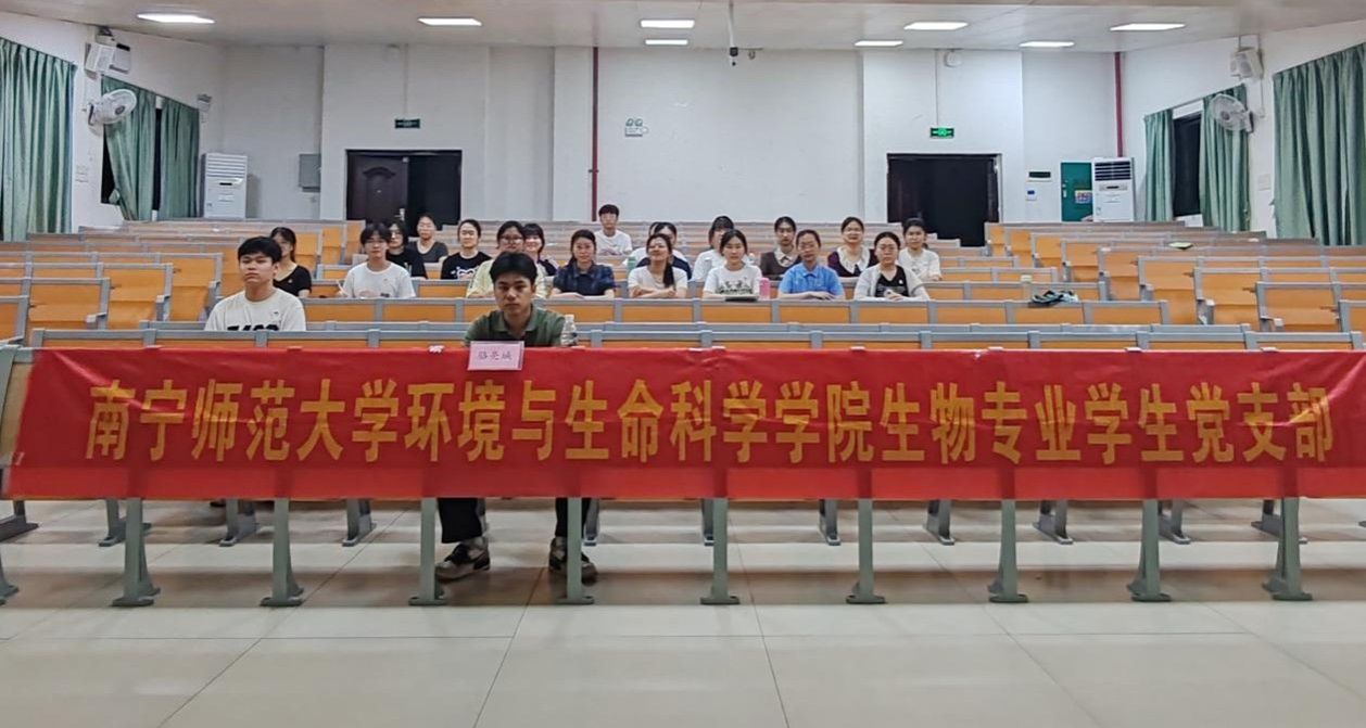 生物专业学生第一党支部在武鸣校区2号教学楼109教室组织召开讨论确定发展对象党员大会。会议采用线上线下相结合的方式进行,由党支部宣传委员孙涛同志主持,党支部全体党员出席会议。