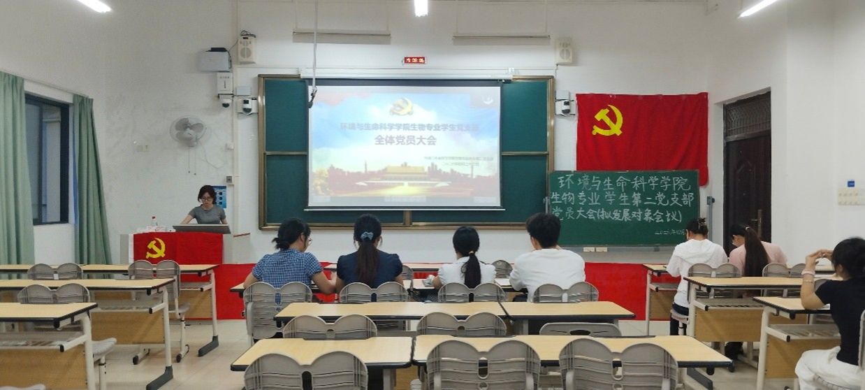 生物专业学生第二党支部于2026年4月22日,在武鸣校区1号教学楼118教室以线上线下相结合的方式召开全体党员大会。本次大会主要围绕拟发展对象情况介绍、开展党员评议相关事宜展开。