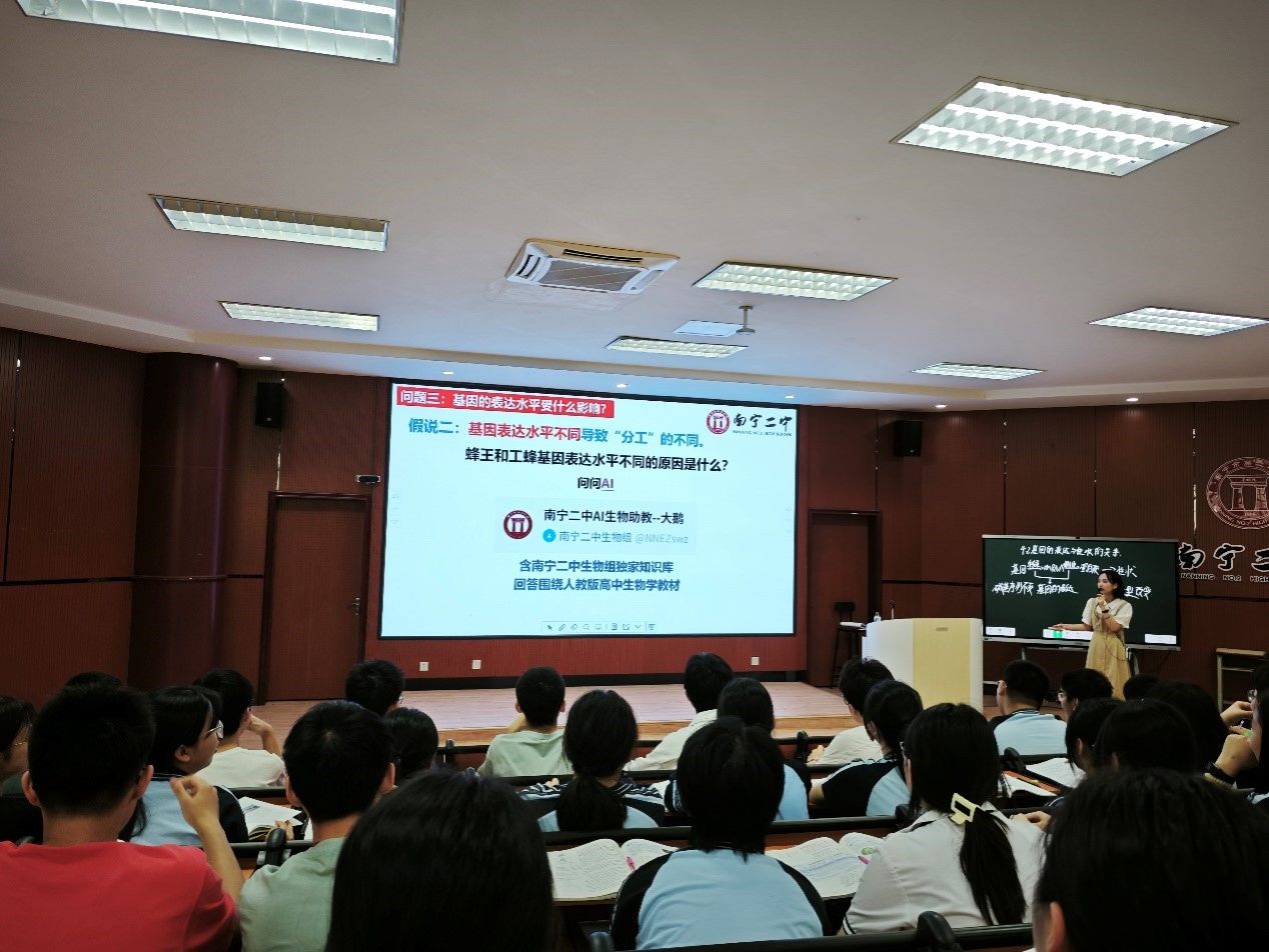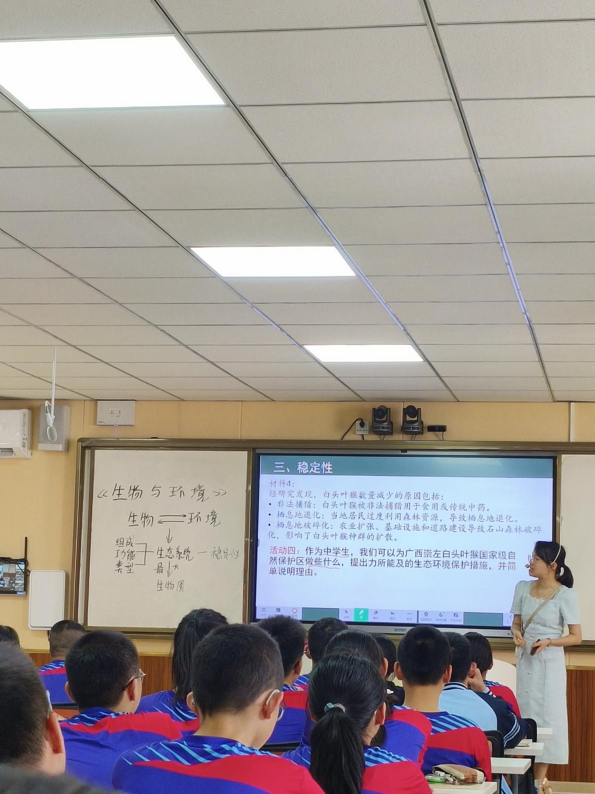 在南宁市第三十七中学,见习团队认真聆听了蒙慧消老师的《生物与环境》和李建梅老师的《植物的生活》课程,两堂课均体现了“以学生为中心”的教学设计,展现了两位老师扎实的专业素养与情境化教学能力。在南宁市第二中学,麦文喆老师的《基因工程》复习课和李晨老师关于《基因表达与性状的关系》的课程向见习生展示了不同学段的差异化教学策略。