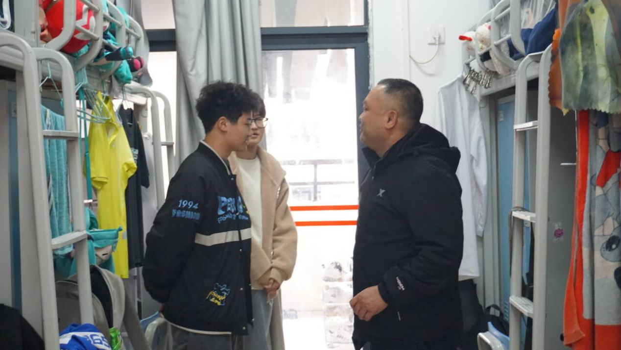 走访过程中,老师们细致询问了同学们的学习、生活状况,了解大家遇到的困难和需求,悉心解答了同学们的疑问,鼓励他们在新学期笃学不倦,做好学习计划,树立远大志向,同时,老师们叮嘱同学们注意天气变化,及时添衣保暖,关注心理健康、人身安全和财产安全,特别是宿舍用水用电、交通出行以及防范电信诈骗等安全事宜。此外,老师们勉励同学们以全新姿态迎接新学期挑战,努力前行。