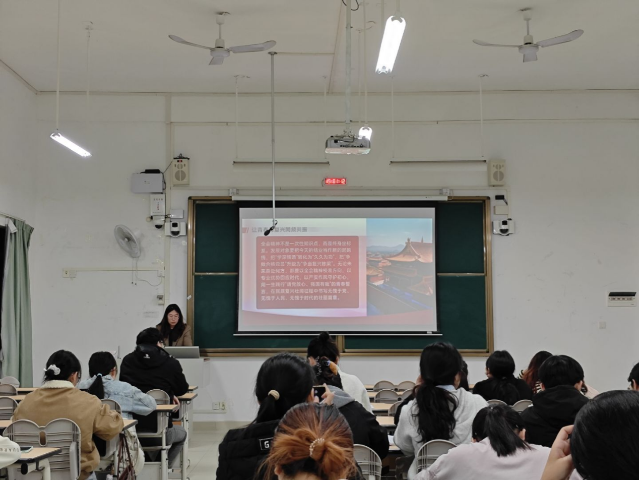 于2025年11月26日晚在武鸣校区1号教学楼120教室开展入党发展对象培训,聚焦学习党的二十届四中全会精神。