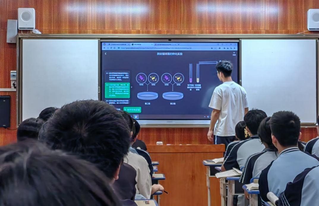 课堂教学方面,本周南宁十四中的纪老师开展了《肺炎链球菌的转化实验》公开课,实习生全程进行了观摩。纪老师运用数字化工具,动态展示经典实验,将抽象的遗传物质探索过程直观呈现,助力学生在直观感受中领悟科学原理。实习生们严谨细致地做好教学记录。课后,生物学科组组织开展研讨活动。纪老师针对教学设计的逻辑架构与突出亮点进行了分享。偷拍网