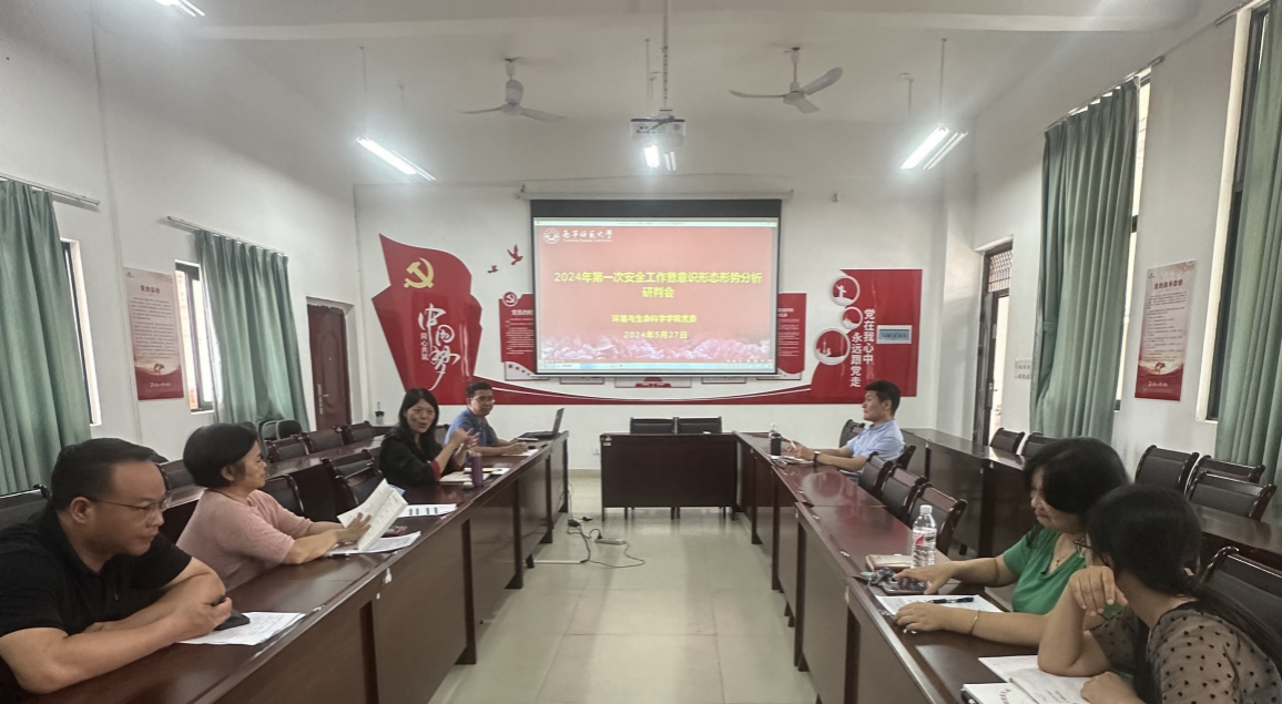 于地海楼B508会议室召开2024年第一季度安全工作暨意识形态形势分析研判会议。会议由学院党委书记何英姿主持,学院党委委员、纪委委员、教工党支部书记参加会议。