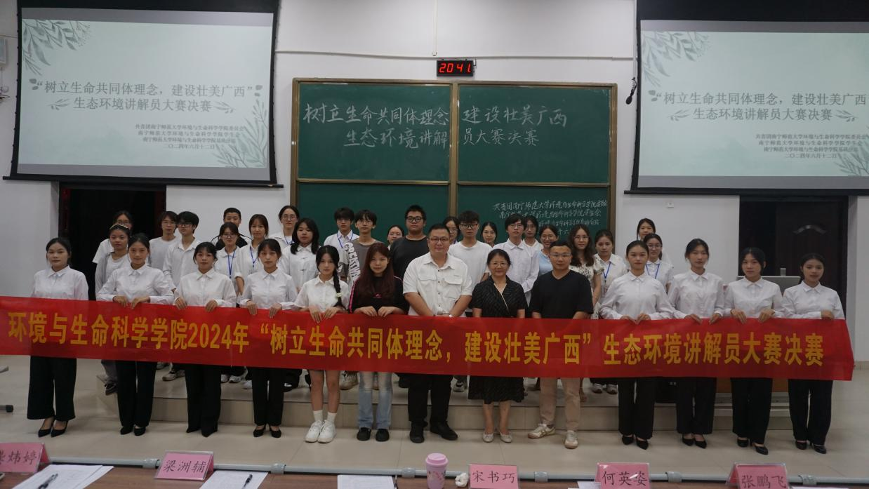 于2024年6月12日在地海楼B109教室举办“树立生命共同体理念,建设壮美广西”生态环境讲解员大赛。