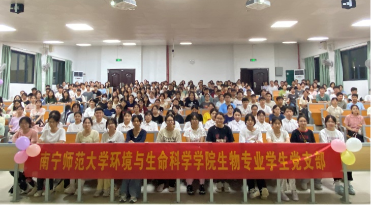 生物专业学生党支部于2024年8月31日晚在武鸣校区一号教学楼115教室开展了2024级新生入党启蒙教育活动。学院党委组织员盛凯老师、生物专业学生党支部全体预备党员及2024级生物科学专业全体新生参加。