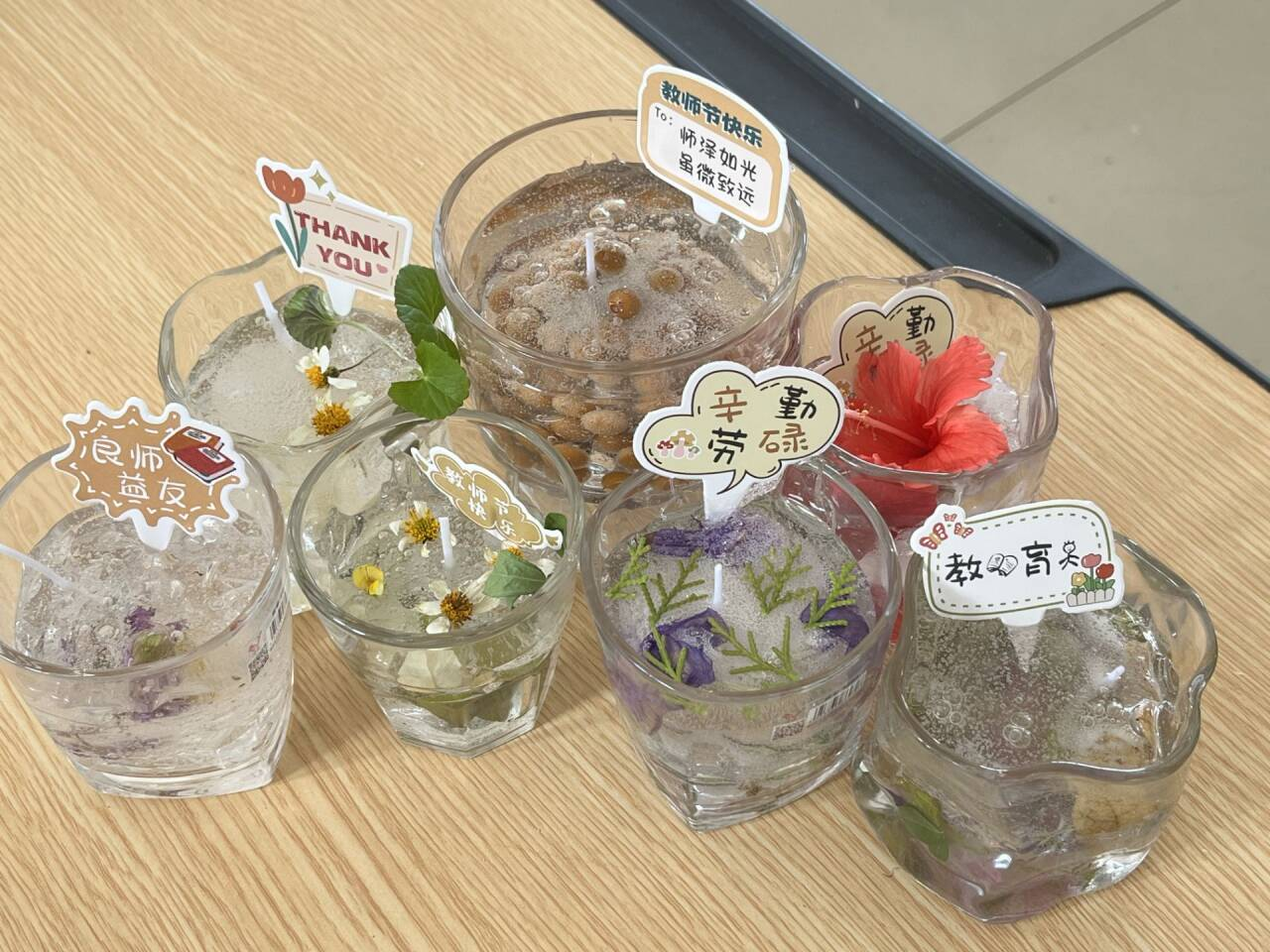 于9月10日下午在地海楼一楼大厅举办了主题为“烛光颂恩师,匠心育未来”的手工鲜花蜡烛制作活动。
