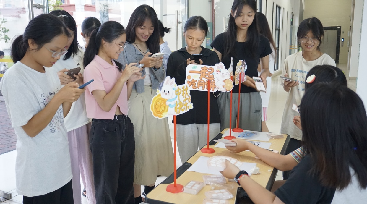 此次活动主要分为趣味游戏和制作月饼两大环节。游戏环节中,成功通过五个游戏关卡的同学可以获得制作月饼的机会,而未能通过五个游戏关卡的同学则可以获得小礼品一份。同学们热情高涨,或驻足沉思,或相互讨论,尽全力通过游戏关卡。在制作月饼环节,同学们更是充分发挥出自己的创意,根据自己的喜好,使用模具做出各式各样的月饼,并互相分享,传递中秋佳节美好祝愿。