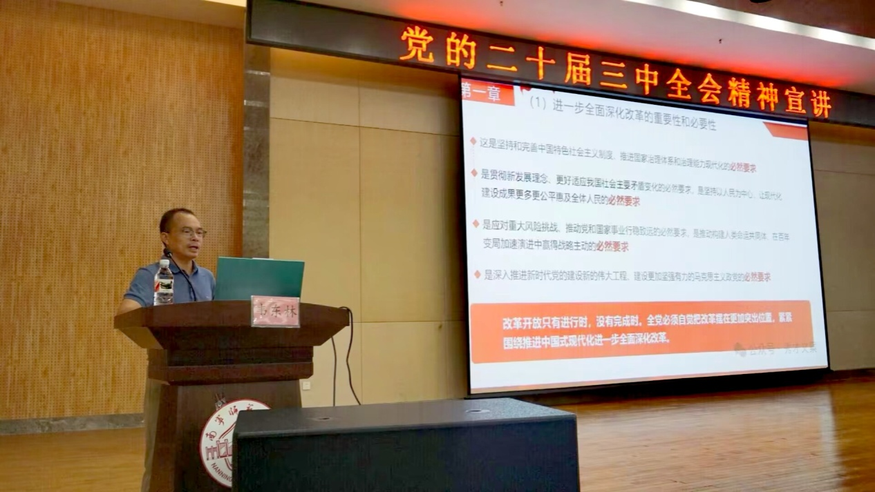 召开主题为“笃学、深思、力行”的学习贯彻党的二十届三中全会精神辅导会。主讲人为学院党委副书记(主持党委工作)韦东林。