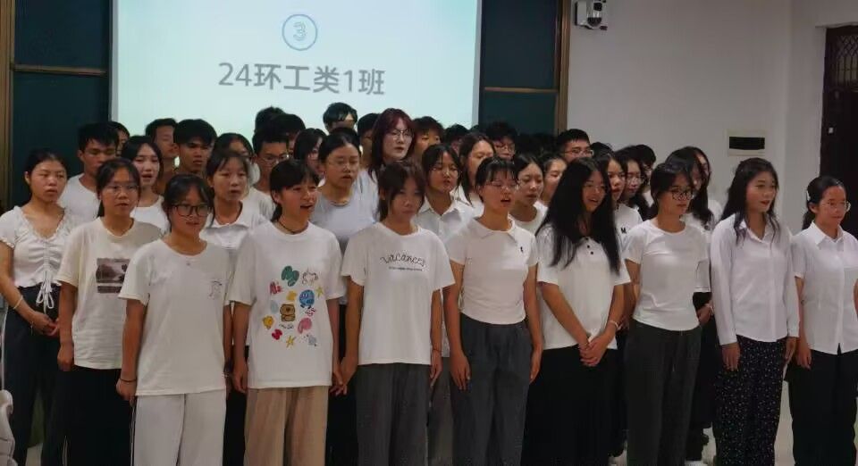 于2024年10月18日在武鸣校区1号教学楼218教室举办“奋楫笃行新时代,齐唱校歌颂芳华”2024级新生校歌比赛初赛。莅临本次比赛的评委有兼职辅导员聂燕、黄光娇,院团委副书记梁佩钰,学生会执行主席何诗颖,学生会主席团成员卢诗晴。