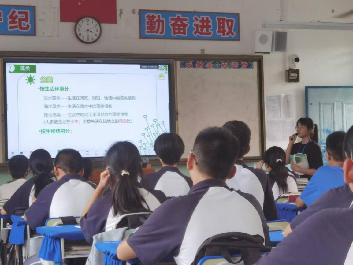 课堂中,为了让学生更容易理解学习内容,活跃学习氛围,实习生们准备了丰富的教具和实验材料,通过生动有趣的实验演示,将抽象的知识直观化,把复杂的生物学概念与学生的日常生活实例相结合,使学生更容易理解知识点,也增强了他们对生物学的兴趣,提高了课堂的活跃度,使学习过程变得更加高效。