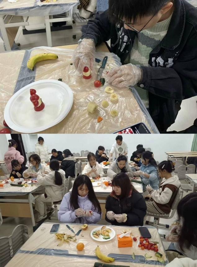 营养与健康俱乐部于2024年12月17日在武鸣一号教学楼117教室举办了以“营养均衡,健康美味”为主题的水果拼盘活动。