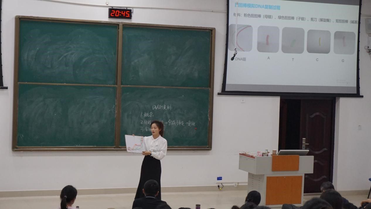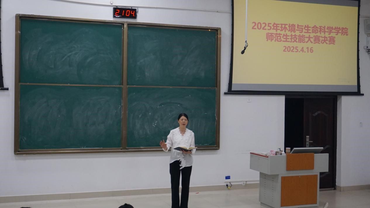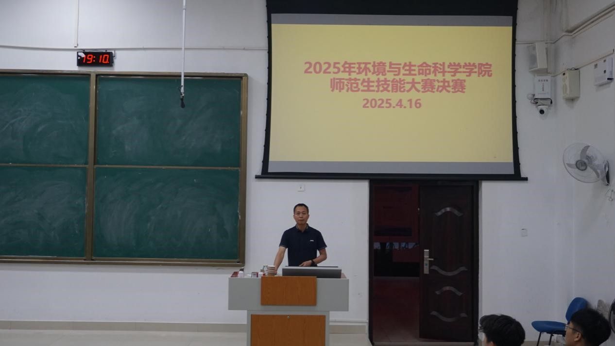 于2025年4月16日晚在武鸣校区地海楼B109教室举办师范生技能大赛决赛。学院院长何英姿、教师李鹏、陈梅兰、庞毅担任评委,2023级生物科学专业全体同学到场观摩学习。