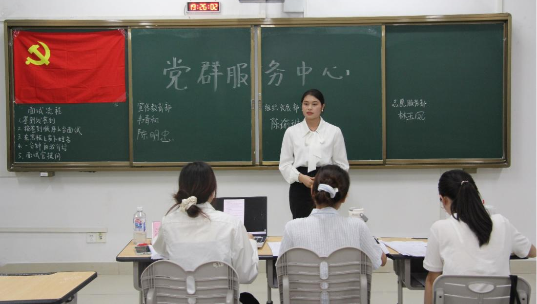 党群服务中心于7月5日晚在武鸣校区1号教学楼102教室开展学院党群服务中心第一批工作人员面试。本次面试的评委团由学院研究生支部委员会组成,面向学院党员和入党积极分子。