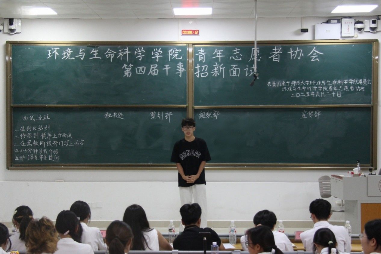 2025年9月20日晚,*偷拍网 青年志愿者协会第四届干事招新面试在武鸣校区一号教学楼115教室圆满完成。本次招新面试工作由学院辅导员甘佩萍、骆亮城,院青协常委团会长蓝国莲、秘书长欧亚丽、副会长蒙雨昕及全体委员共同参与。面试旨在选拔一批有热情、有担当、有能力的同学加入青协,为协会注入新鲜血液,推动志愿服务工作持续提升与创新。
