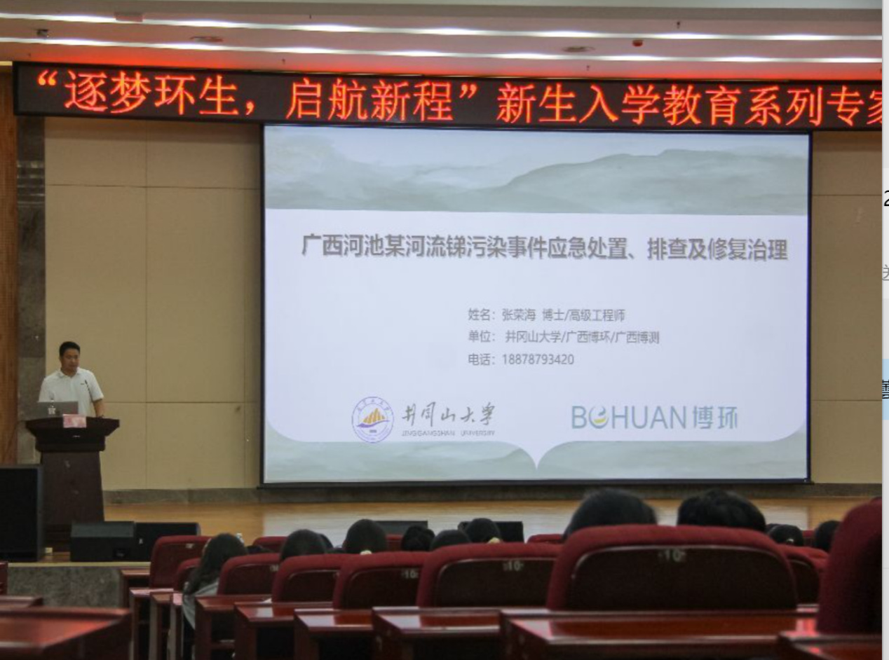张荣海校友还结合自己曾经主导的科研项目《广西河池某河流锑污染事件应急处置、排查及修复治理》展开实例讲解,从污染背景、应急处置、污染源排查、修复治理等方面,细致拆解实践过程中的关键环节,为同学们理解专业应用场景、明晰未来发展方向提供了宝贵参考。