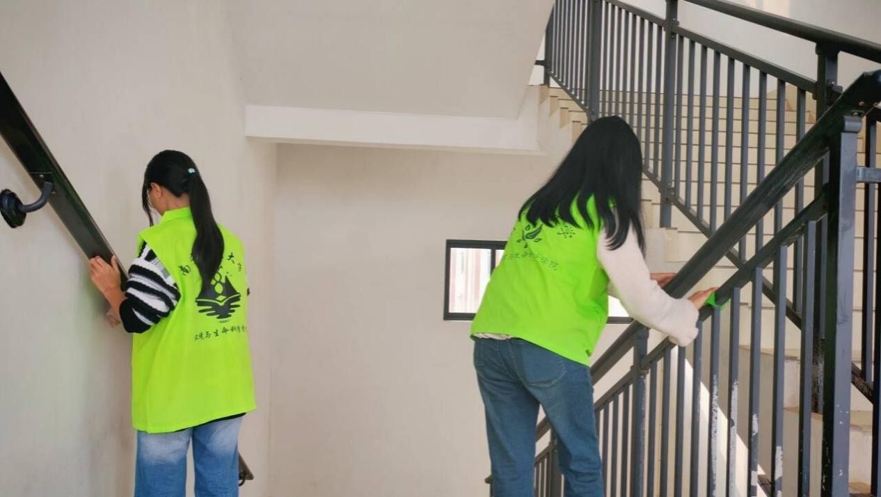 洁净教学楼,志愿暖校园——偷拍网 青年志愿者协会顺利开展2025年教学楼清扫活动