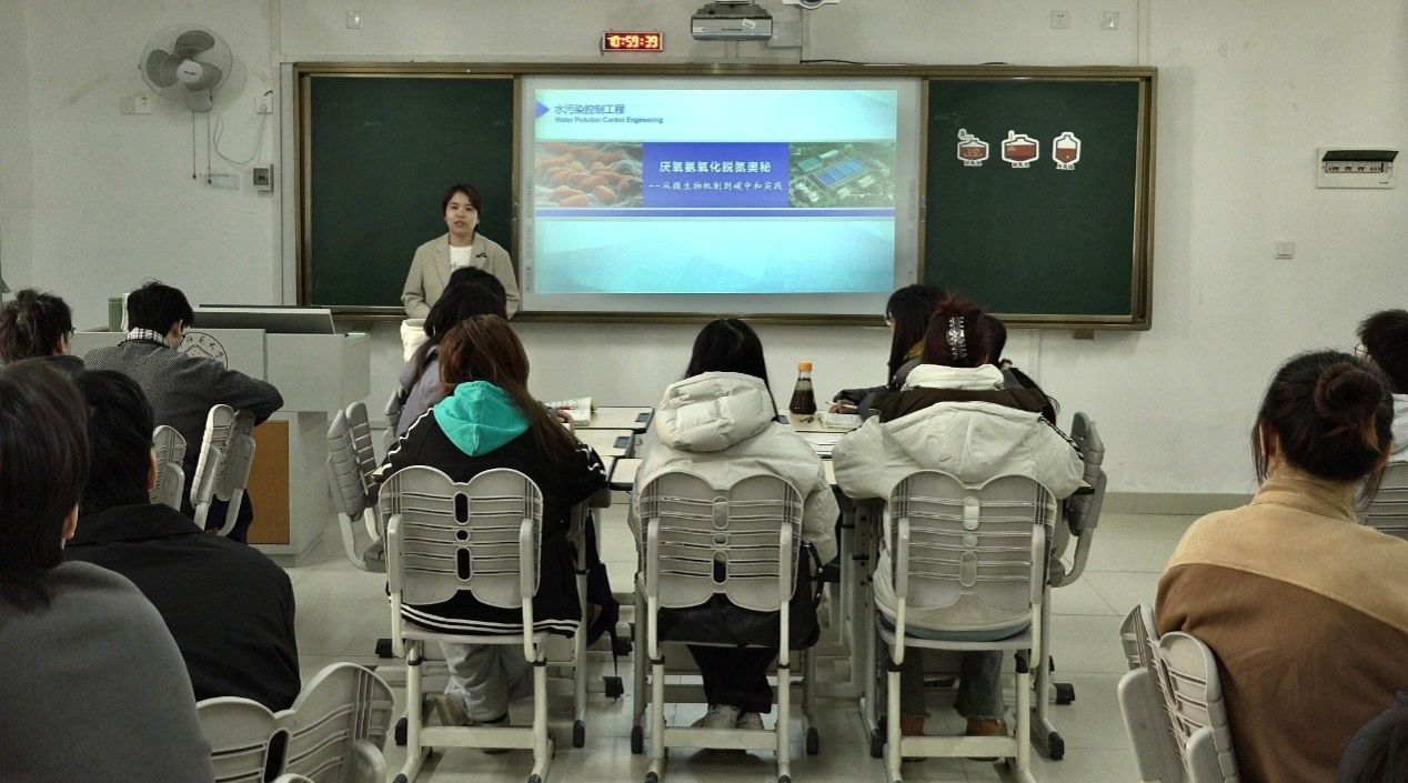 《水污染控制工程》课程的特色公开课《厌氧氨氧化脱氮奥秘——城市污水脱氮过程的廉洁启示》顺利开讲。本次公开课以“专业知识+思政融合”为核心,将厌氧氨氧化脱氮技术原理与廉洁建设理念创新性结合,为学生呈现了一堂专业有深度、思政有温度的特色课程。
