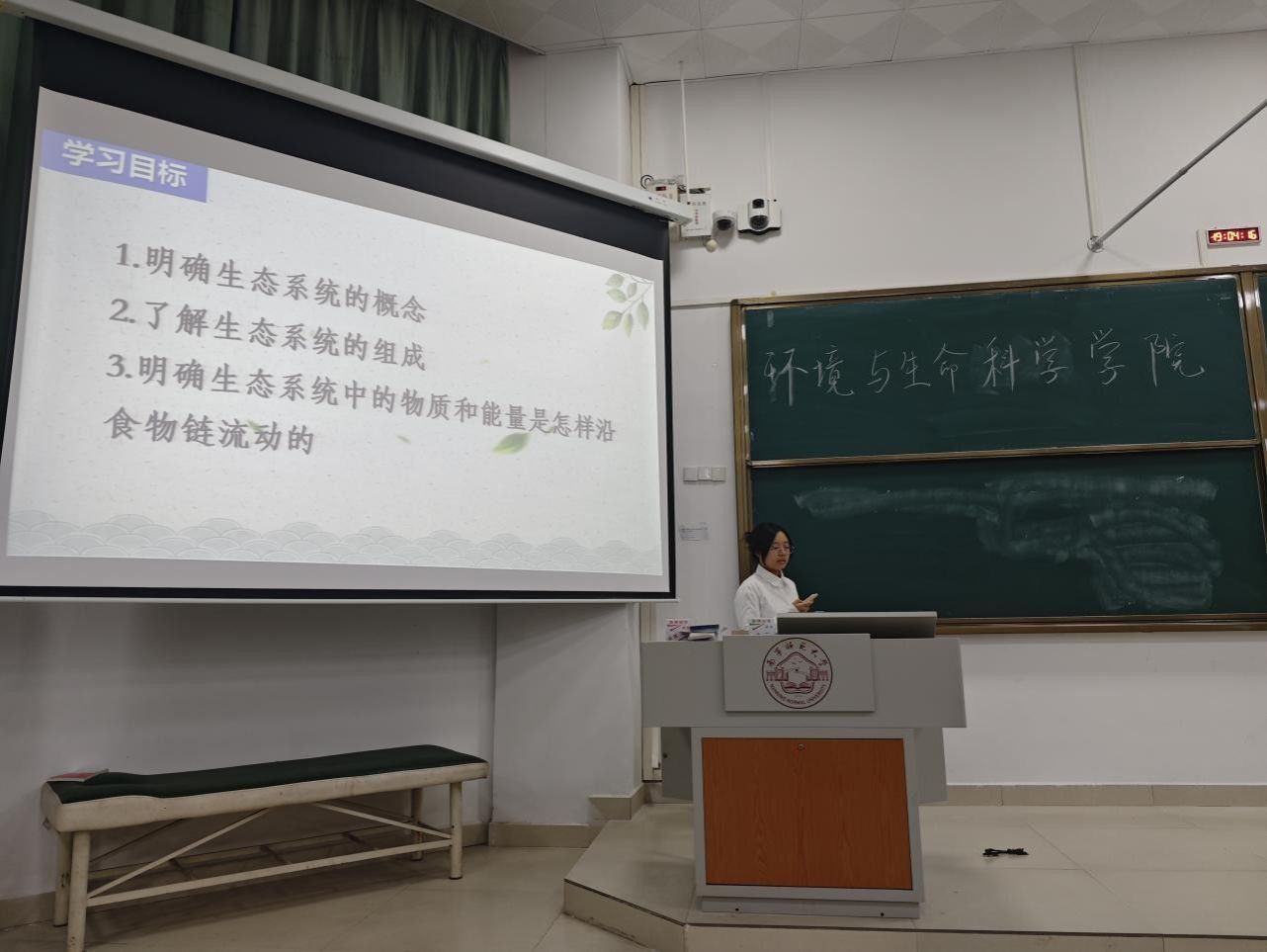 汇报会模拟真实教学场景,来自四个班级的八位实习生代表依次登台,进行了限时十分钟的模拟课堂教学展示。同学们授课内容紧扣中学生物学核心知识,涵盖了“植物体的结构层次”、“生态系统的组成”等多个重要主题,充分体现了对专业教材内容的深入理解。
