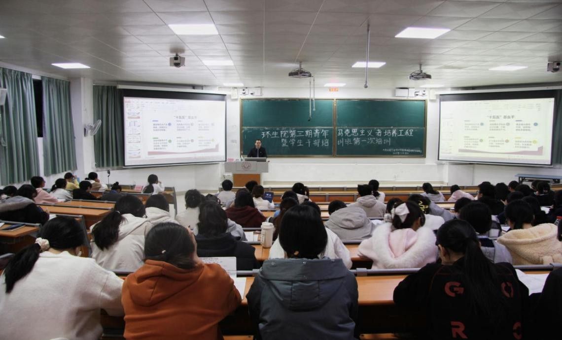 于12月15日晚在武鸣校区1号教学楼114教室开展青马班第一次专题培训。本次培训由学院党委书记韦东林主讲,青马班全体成员参与学习。