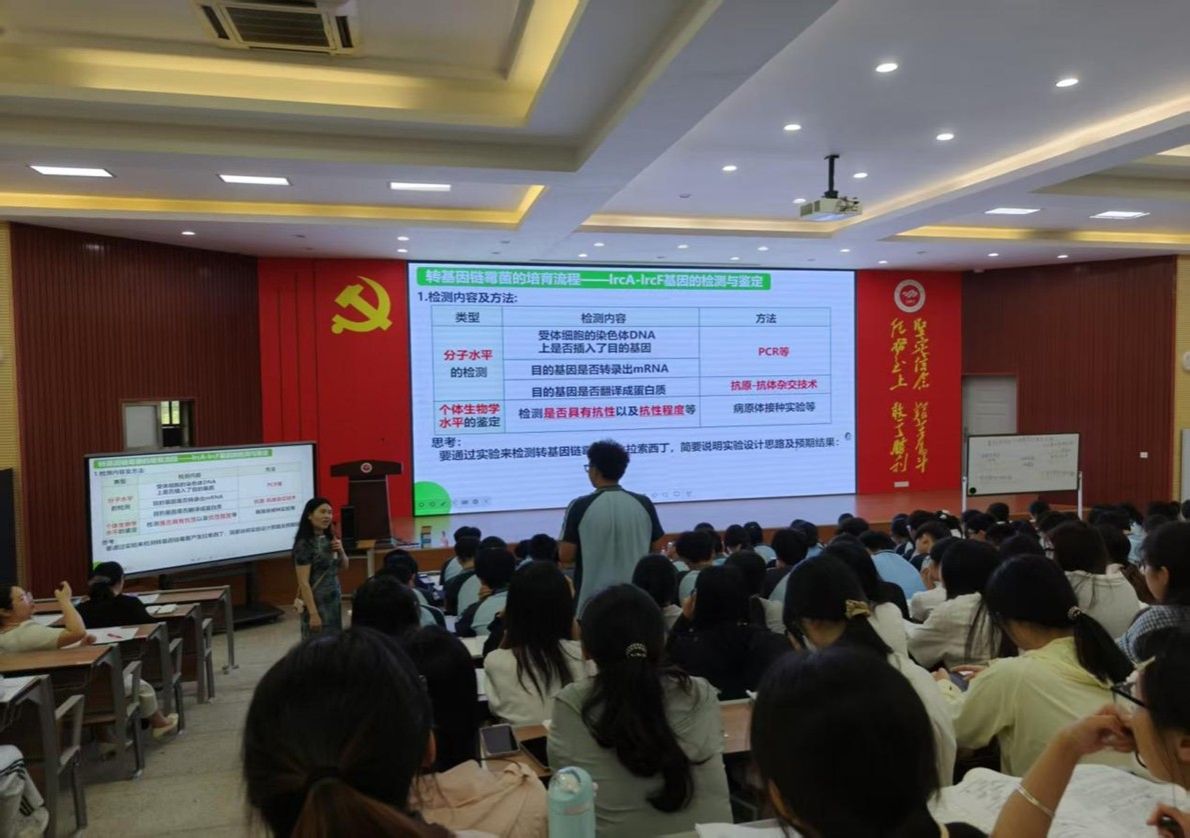 见习伊始,由唐露珠老师为同学们带来《基因工程》精品授课。课堂上,唐老师以严谨的逻辑架构梳理知识脉络,结合经典案例拆解基因工程的核心原理与操作流程,将抽象的分子生物学知识具象化。她巧妙借助AI辅助教学工具,将复杂的基因编辑过程以可视化形式呈现,配合层层设问的互动设计,引导学生主动思考,高效突破重难点,展现了优秀的课堂驾驭能力与专业素养。
