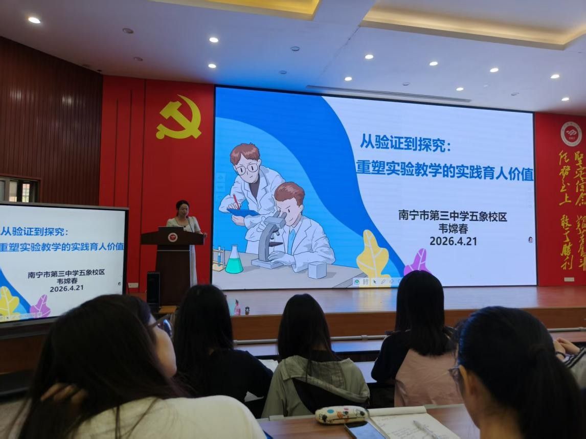 2024级生物科学专业全体学生赴南宁市第三中学五象校区开展教育见习活动。见习活动围绕优质课堂观摩、专题讲座、研讨交流三大模块有序开展,为师范生搭建沉浸式研修学习平台,有效促进教育教学理论与课堂实践深度融合。