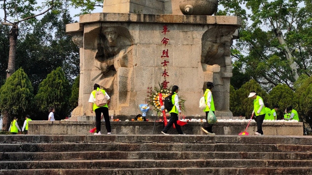 清明祭扫缅怀活动于狮子山公园烈士纪念碑前有序开展。30名志愿者分工协作,清扫园区道路与绿化带内的垃圾,擦拭纪念碑灰尘,以实际行动致敬英烈、缅怀先烈。