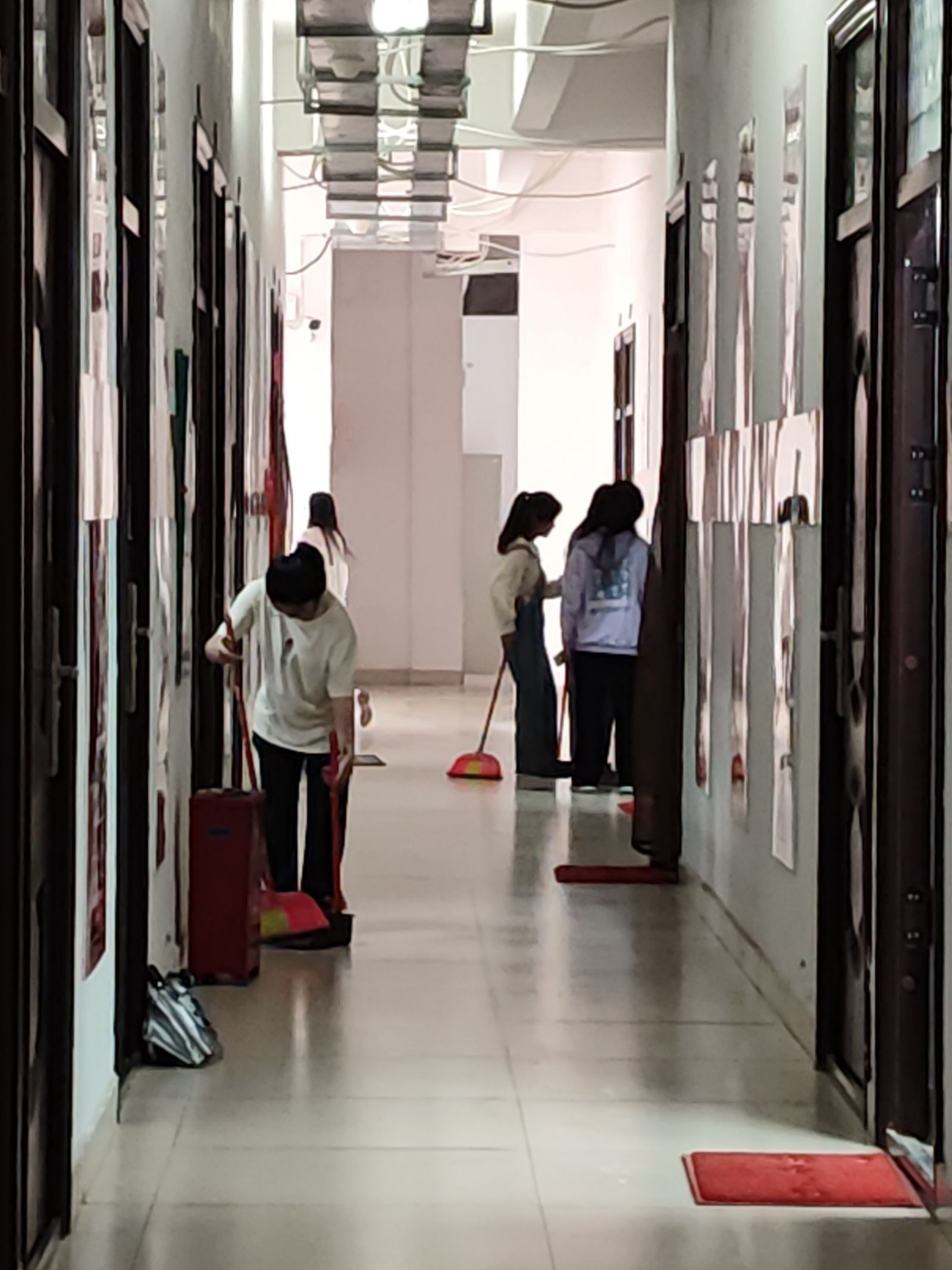 义务劳动时间一般安排在周二下午。负责清扫的同学按时到达地海楼,对学院楼梯间、办公室和走廊等区域进行打扫。他们不怕脏、不怕累,认真细致地完成了每一项任务。经过同学们的认真劳动,学院环境变得更加整洁美丽。