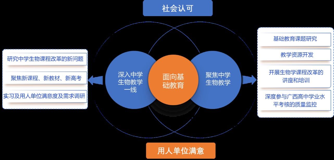 生物科学(师范)专业围绕国家基础教育改革发展需求,立足广西,落实立德树人的根本任。以提高人才培养质量为核心,突出内涵建设,坚持特色发展,在本科人才培养体系建设、专业建设、课程建设、教师教学能力提升、学生实践创新能力培养等方面全面推进本科教学工作改革,进一步加强了本科教学工作中心地位,提高了人才培养质量,促进了教学工作的内涵式发展。