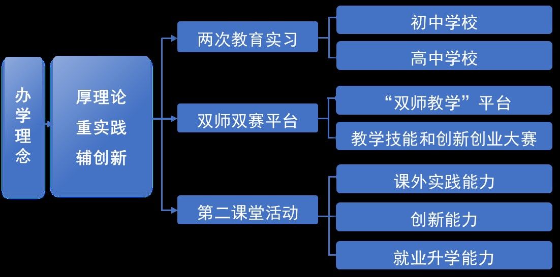 一、创新人才培养模式,形成了“两次教育实习、双师双赛平台、第二课堂活动”的2+2+2办学特色,具有独特性